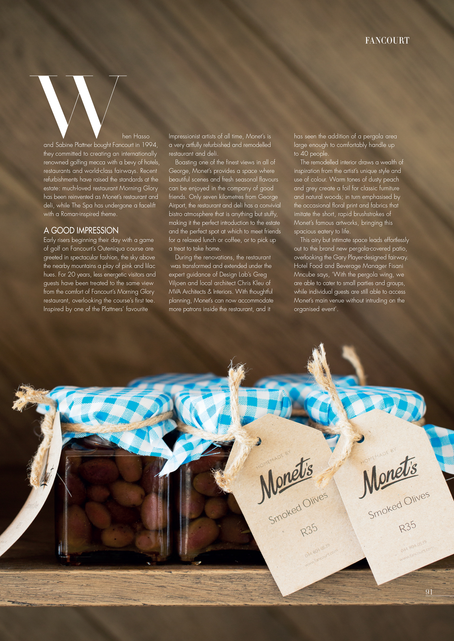 Various editorial images shot for the second issue of Fancourt magazine for 2015.